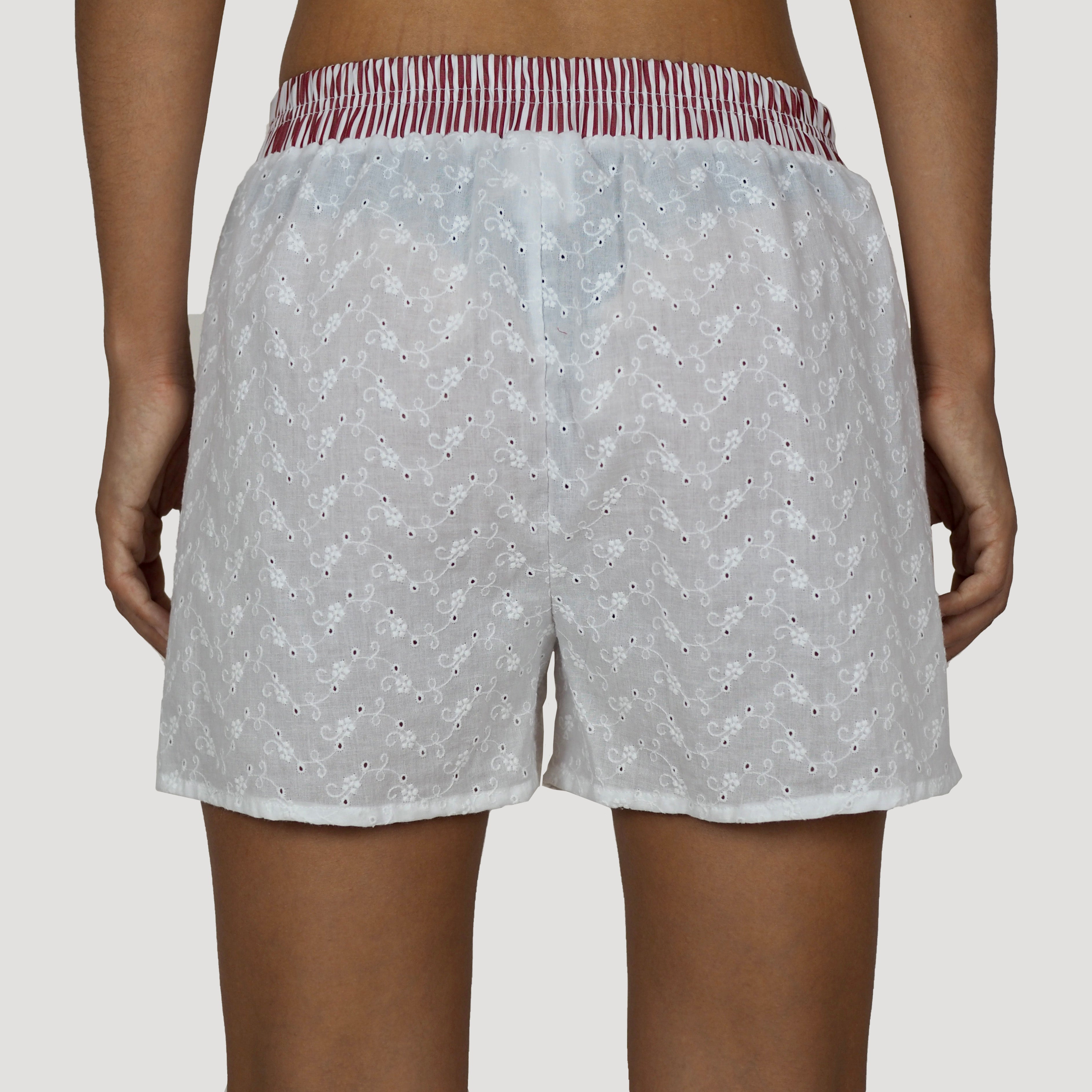 Their short boxers are unisex, high-waisted, with an elastic waistband and front button closure.