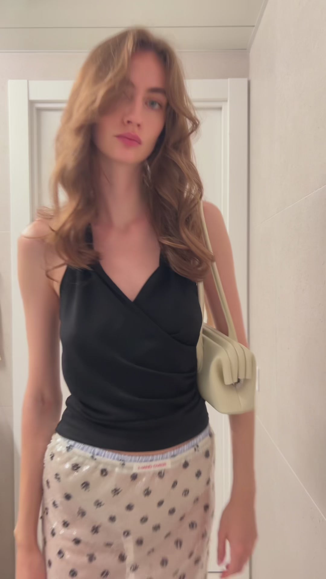 The model is 1.75 m (5'9") tall and wears a size S by Hand Over. Her measurements, for reference, are: