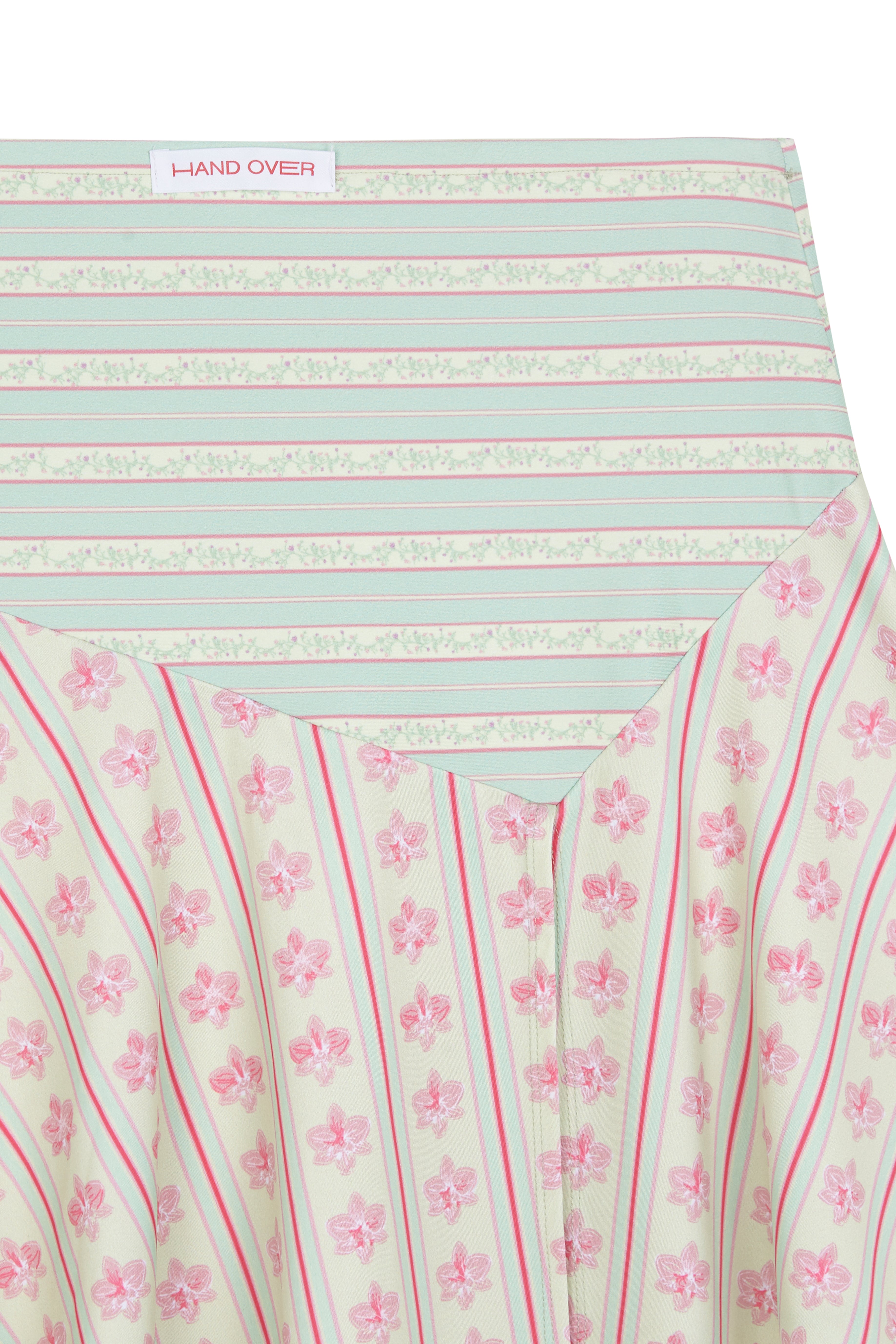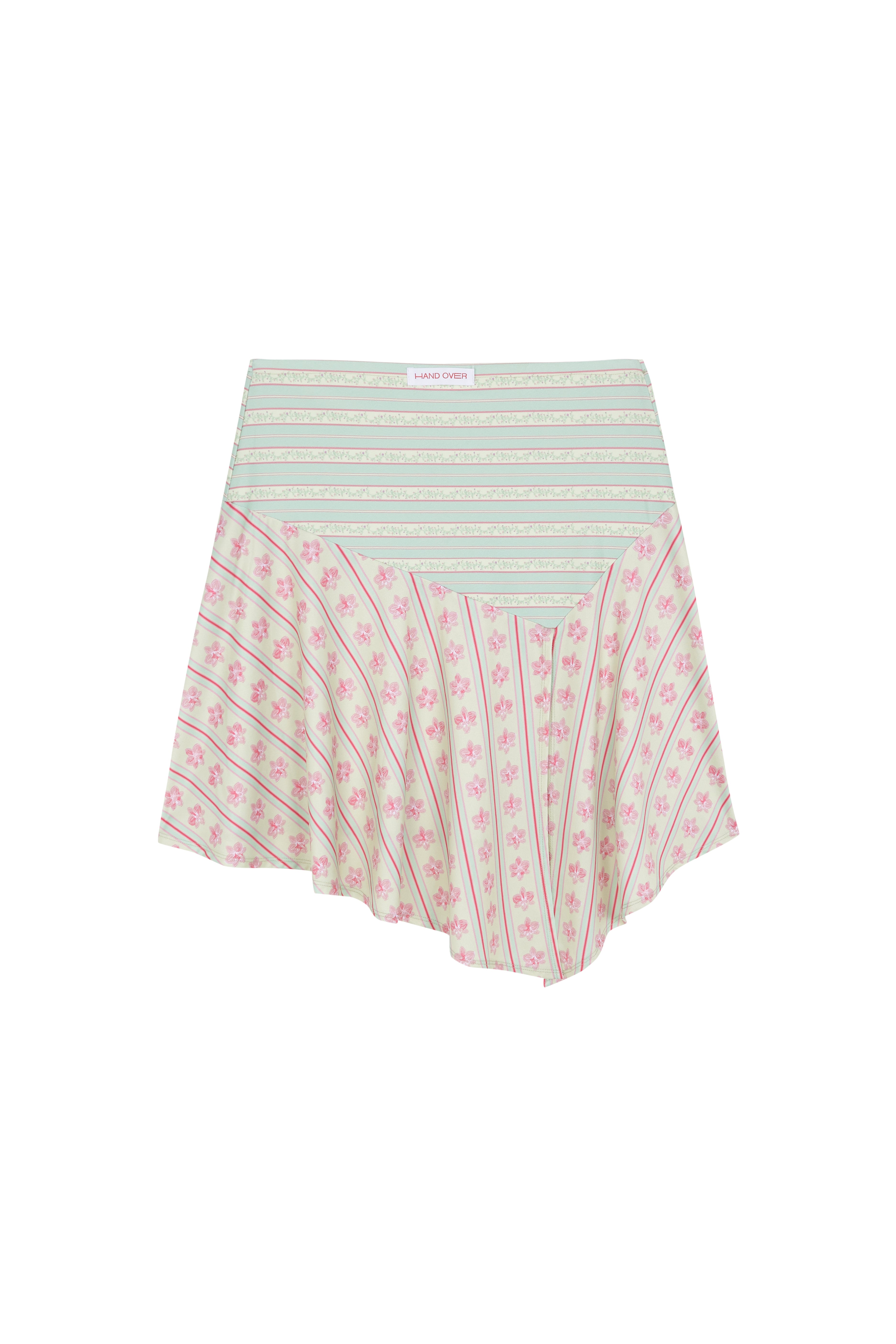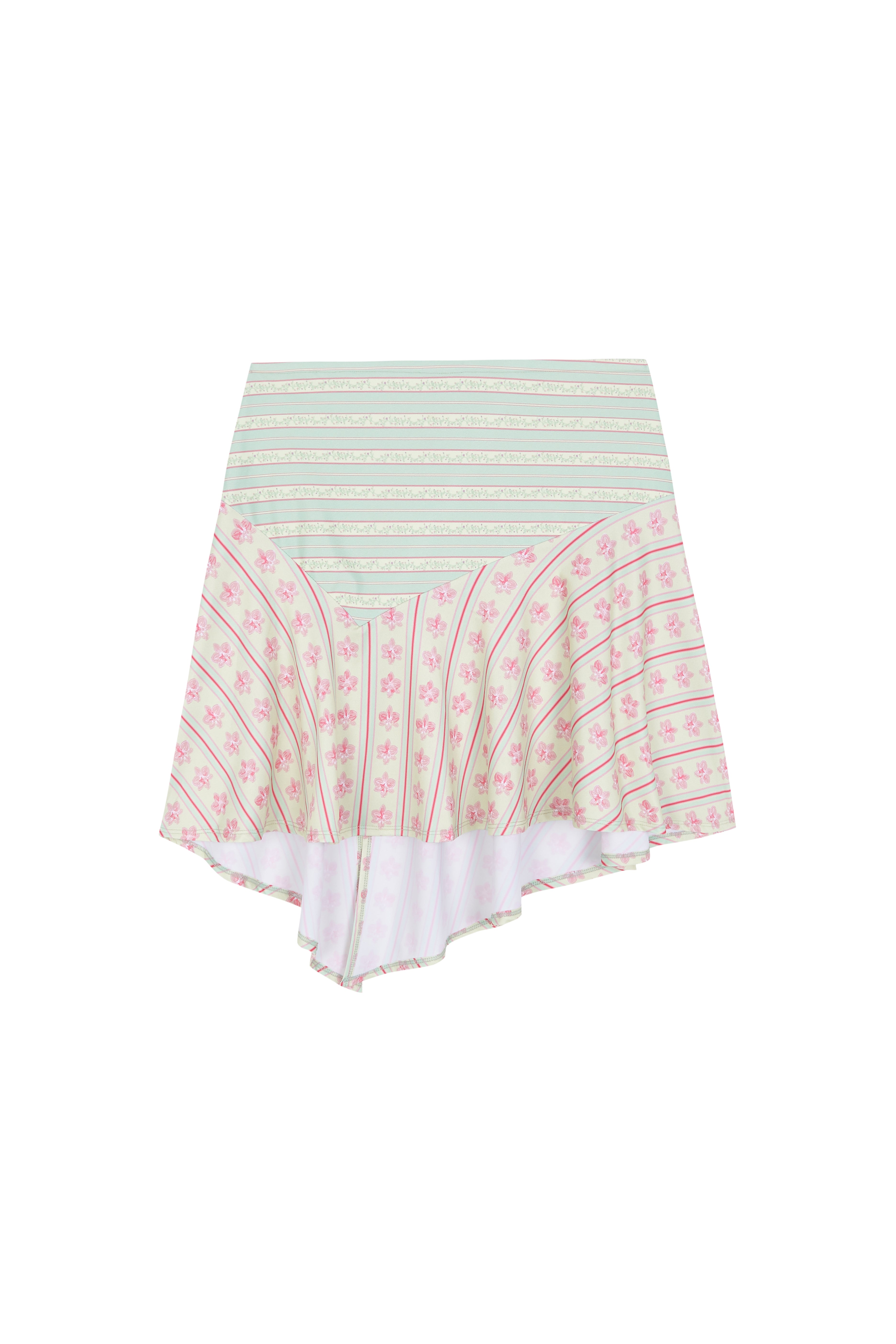 The Piero Skirt is a printed skirt in shades of pink and green, made from polyester fabric with elastane for a comfortable fit.