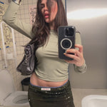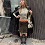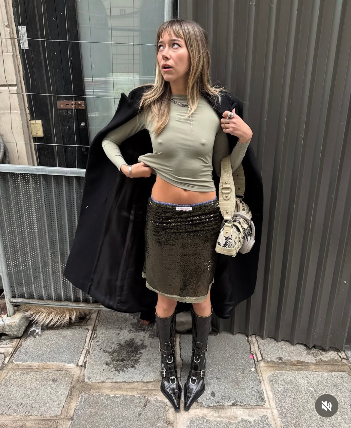 The model is 1.73 m (5'8") tall and wears a size S in Hand Over. Her measurements, for reference, are: