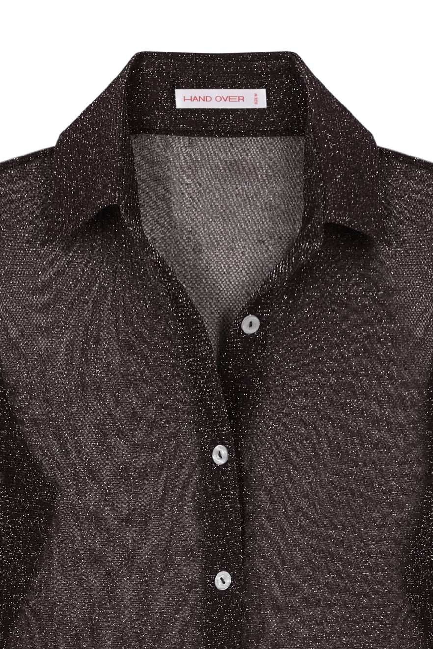 The Liam Blouse is a slim-fit blouse with a soft finish in black, designed to fit the silhouette slightly.