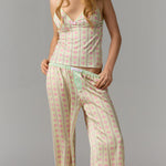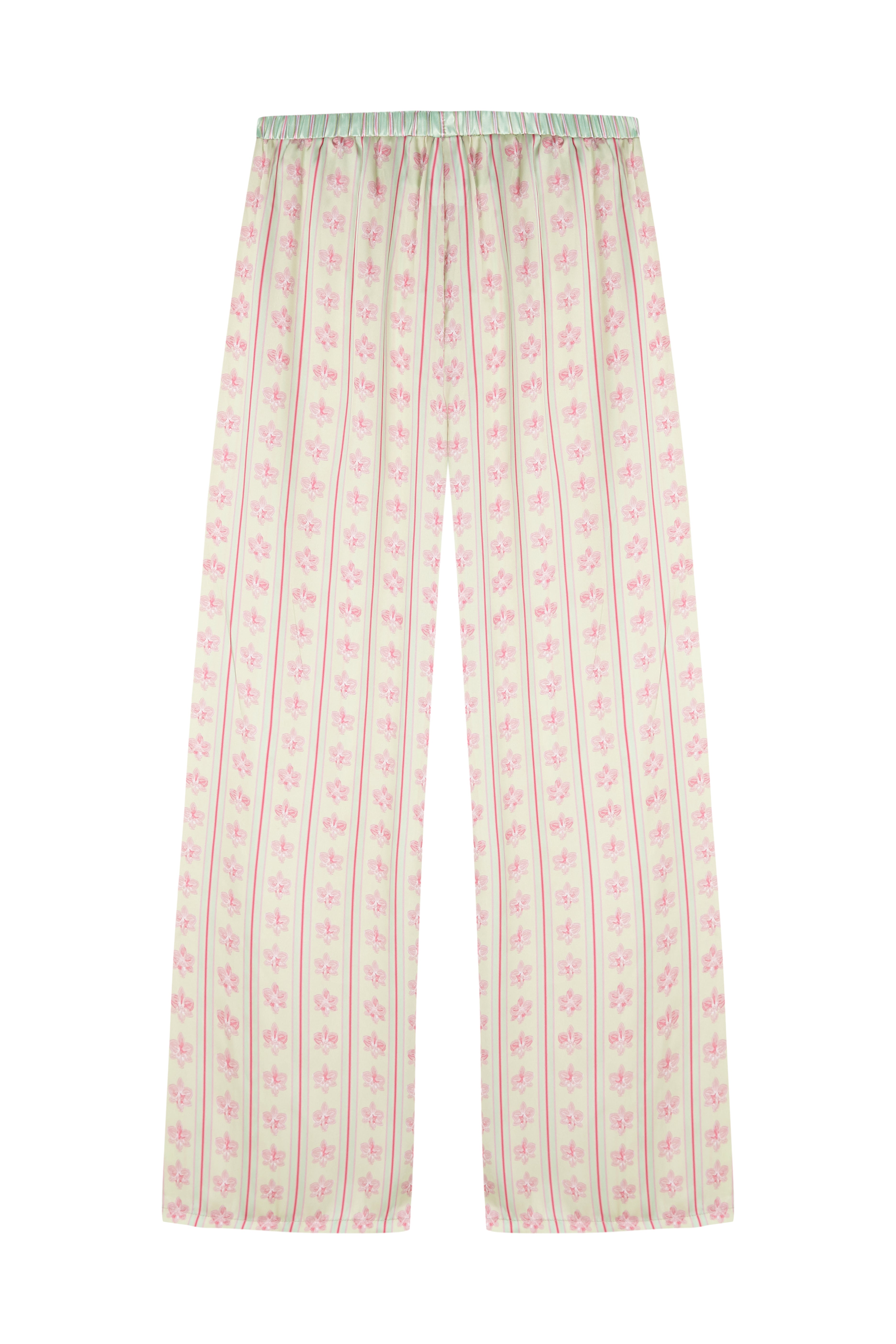 The Ex-Boyfriend® Piero Long is a pair of extended-length trousers with a pink and greenish print, made from polyester fabric.