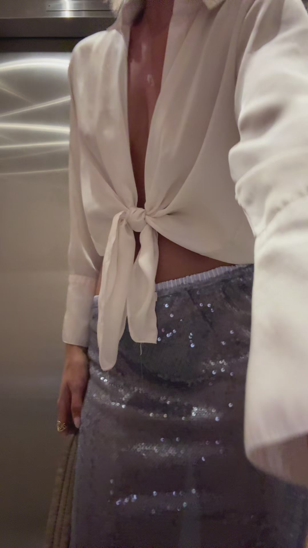 The model is 1.75 m (5'9") tall and wears a size S by Hand Over. Her measurements, for reference, are: