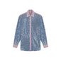 His sequin shirt is made with 100% polyester, with cotton details.