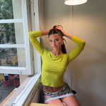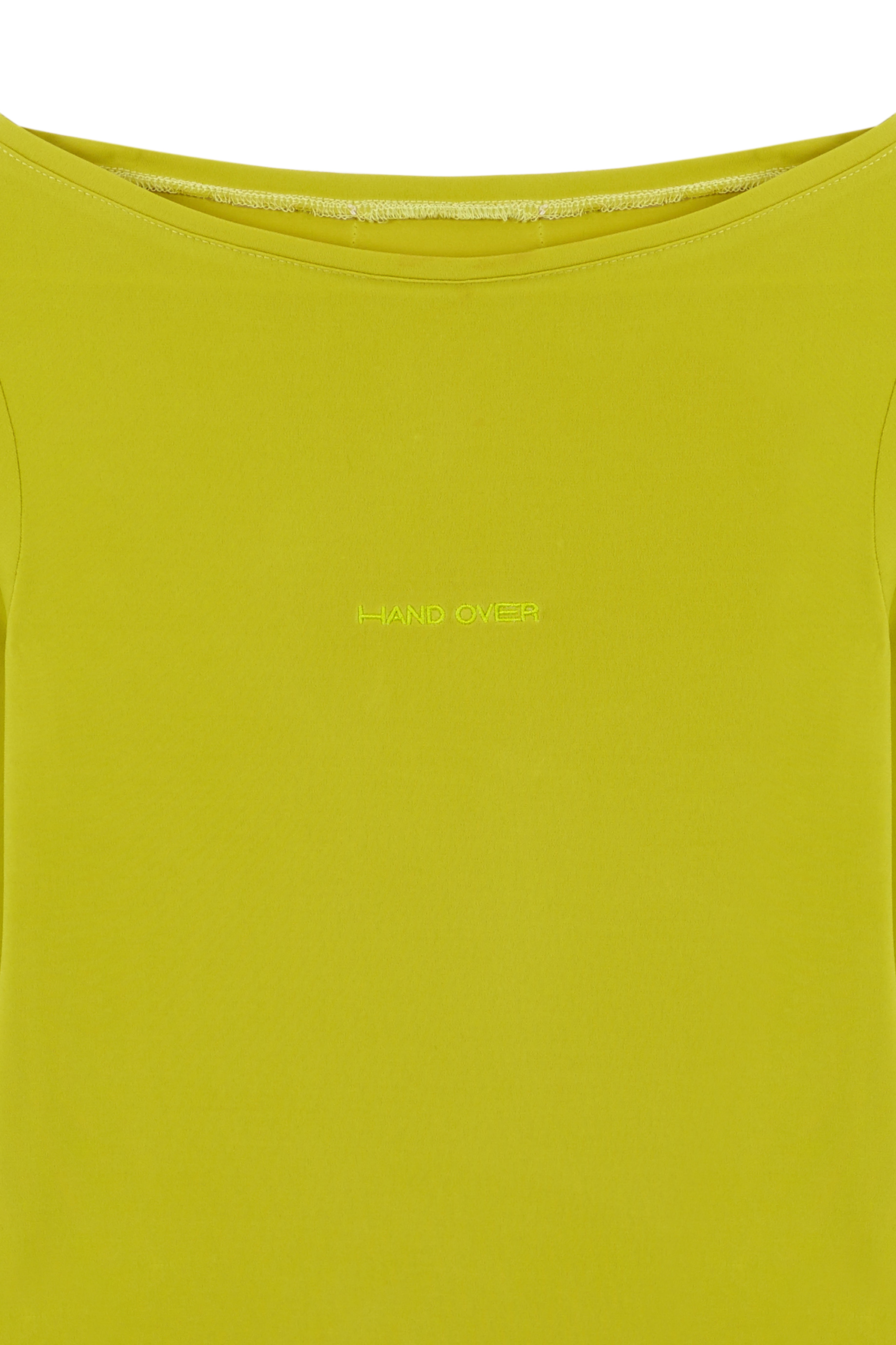 La modelo mide 1.70 cm (5'7") y usa talla S de Hand Over. Tiene estas medidas corporales: